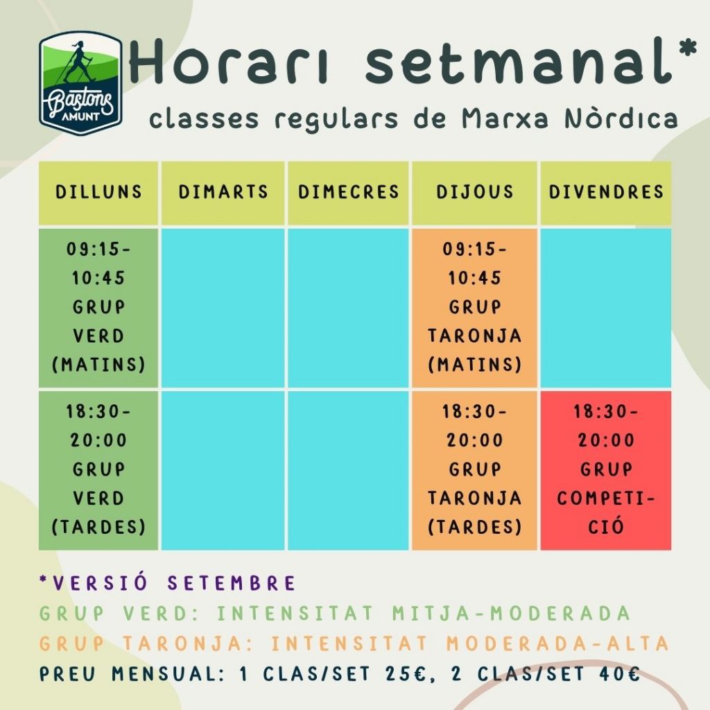 Tenemos distintos grupos de entrenamiento en función de horarios y niveles, una o más clases a la semana, de 1 hora y media de duración.