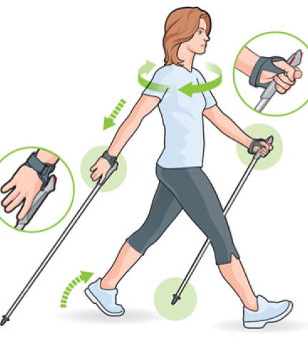 Además con una buena técnica, activas el 90 % de los músculos y quemas hasta un 45 % más de calorías que al caminar de forma habitual.